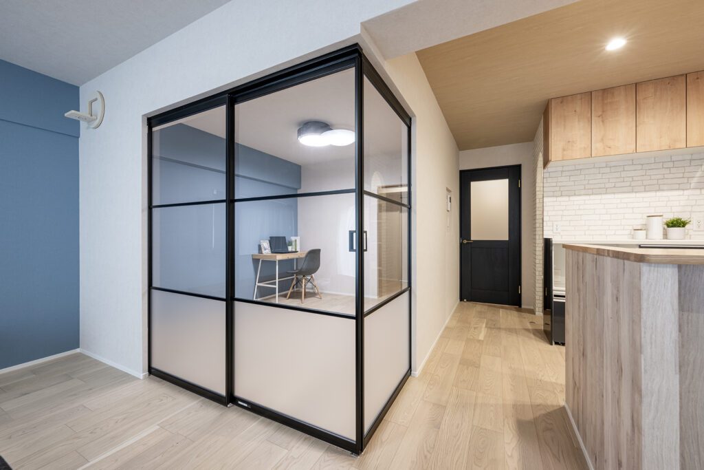 例えば、Panasonic「ベリティス」シリーズのスクリーンウォールを使ったり、クローゼット横の半畳スペースに小型デスクを設置したり、廊下の突き当たりにカウンターデスクを置き、パーテーションで仕切るといった方法があります。