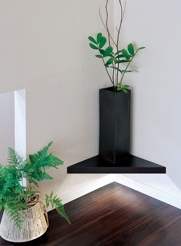 壁面を有効活用できる棚材は、観葉植物を飾るスペースづくりに役立ちます。