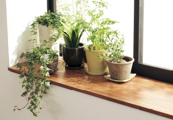 壁面に設置できるカウンター材は、室内プランターを置く場所づくりに最適です。