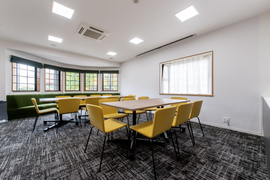 広さのあるこのセミナールームは、イベントやセミナーを開催する際に使用している場所です。